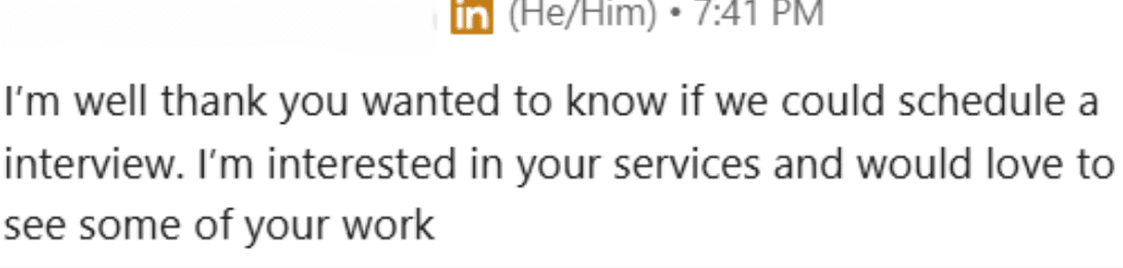 I know exactly how it feels to be unsure where your next client is coming from, I’ve lived that life, I’ve been in the trenches. The good news is you don’t have to stay there. Let’s hop on an e-meet and I’ll show you how we fix that, fast.